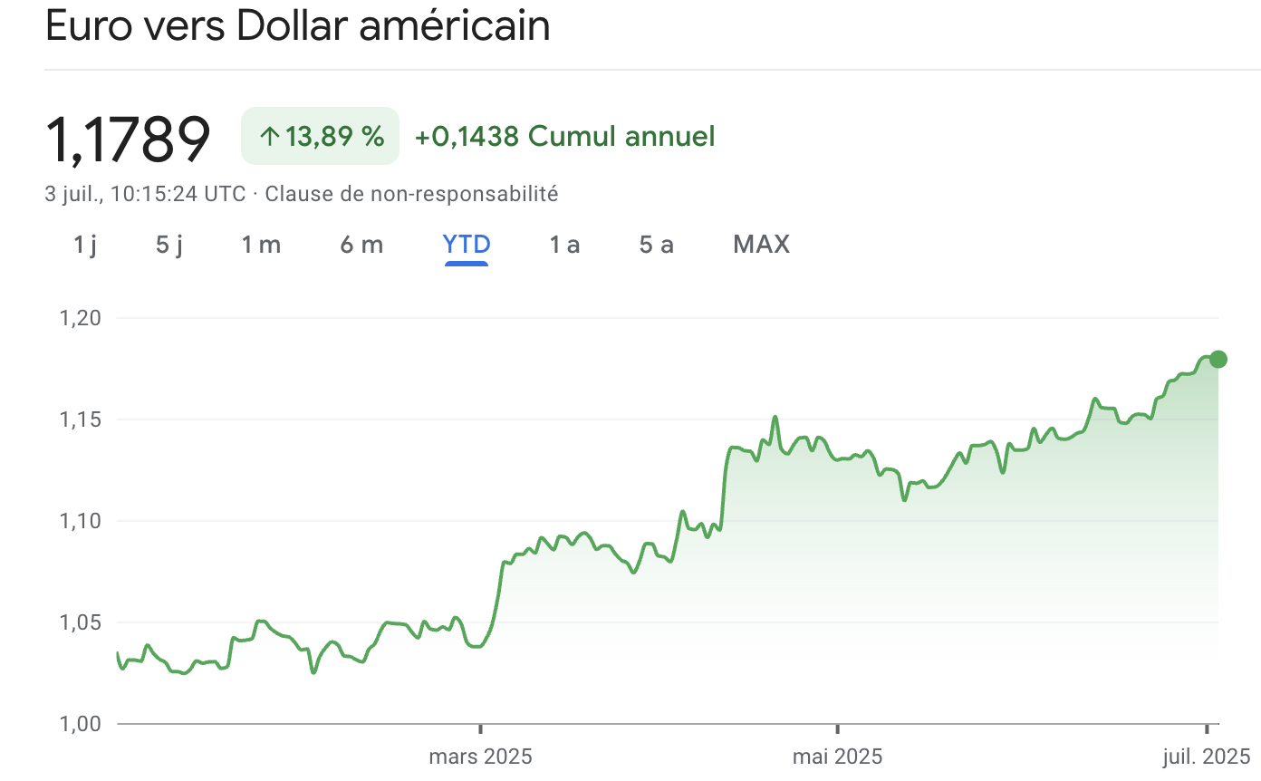 Câest une chute historique pour le billet vert. En six mois, le dollar amĂ©ricain sâest effondrĂ© de 10,8 % face Ă un panier de grandes devises. Un effondrement inĂ©dit depuis 1973, date de la fin de lâordre monĂ©taire de Bretton Woods. En cause ? Le retour de Donald Trump Ă la Maison Blanche⊠et son cocktail explosif de mesures Ă©conomiques. Dans sa version 2.0, Trump dĂ©gaine de nouvelles taxes douaniĂšres, fustige lâindĂ©pendance de la Fed et fait exploser la dette avec son « Big Beautiful Tax Bill », une rĂ©forme fiscale qui pourrait creuser le dĂ©ficit de 3 200 milliards de dollars en dix ans. RĂ©sultat : exode massif des capitaux Ă©trangers et fuite des investisseurs du marchĂ© obligataire amĂ©ricain. La confiance sâĂ©rode, et le dollar plonge. Alors que les marchĂ©s misaient sur une Europe affaiblie par la guerre commerciale, lâeuro a grimpĂ© de +13 %, atteignant 1,17 dollar. Un retournement de situation spectaculaire : les investisseurs parient dĂ©sormais sur une croissance plus robuste dans la zone euro que de lâautre cĂŽtĂ© de lâAtlantique, dâautant que la Fed pourrait baisser ses taux Ă cinq reprises dâici 2026. Des fonds de pension aux banques centrales, le mouvement de dĂ©sengagement sâintensifie. Les gestionnaires dâactifs se couvrent davantage contre le risque dollar. Et pendant que le billet vert chute, lâor flambe, portĂ© par des achats records des banques centrales inquiĂštes dâune dĂ©prĂ©ciation durable du dollar. MĂȘme si le S&P 500 continue de battre des records en dollars, il sous-performe nettement les indices europĂ©ens une fois converti en monnaie locale. Car le dollar est tombĂ© Ă son plus bas niveau depuis plus de trois ans face aux principales devises (Dollar Index). La place de New York reste en apparence flamboyante⊠mais affaiblie dans les faits par une devise chancelante.