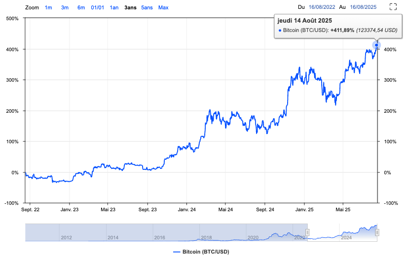 Ăvolution du cours du bitcoin sur 3 ans - Zonebourse